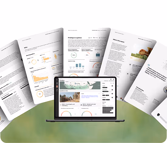 Besides quantitative impact metrics, we also empower you to collect qualitative data that accurately captures feedback from affected people. We use AI to extract insights from interviews and open-ended questions rapidly. This information is vital for understanding the individuals you support and crafting narratives based on authentic quotes and real data.